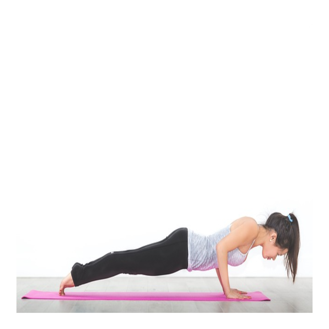 (1) 팔 굽혀 푸시업: 팔꿈치를 구부리며 가슴이 바닥에 닿을 때까지 천천히 몸을 내립니다. 팔꿈치는 몸 쪽으로 붙여야 합니다.